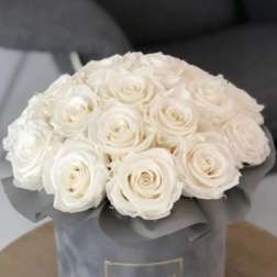 Price: $199.00Luxury White Roses in Grey Velvet Box